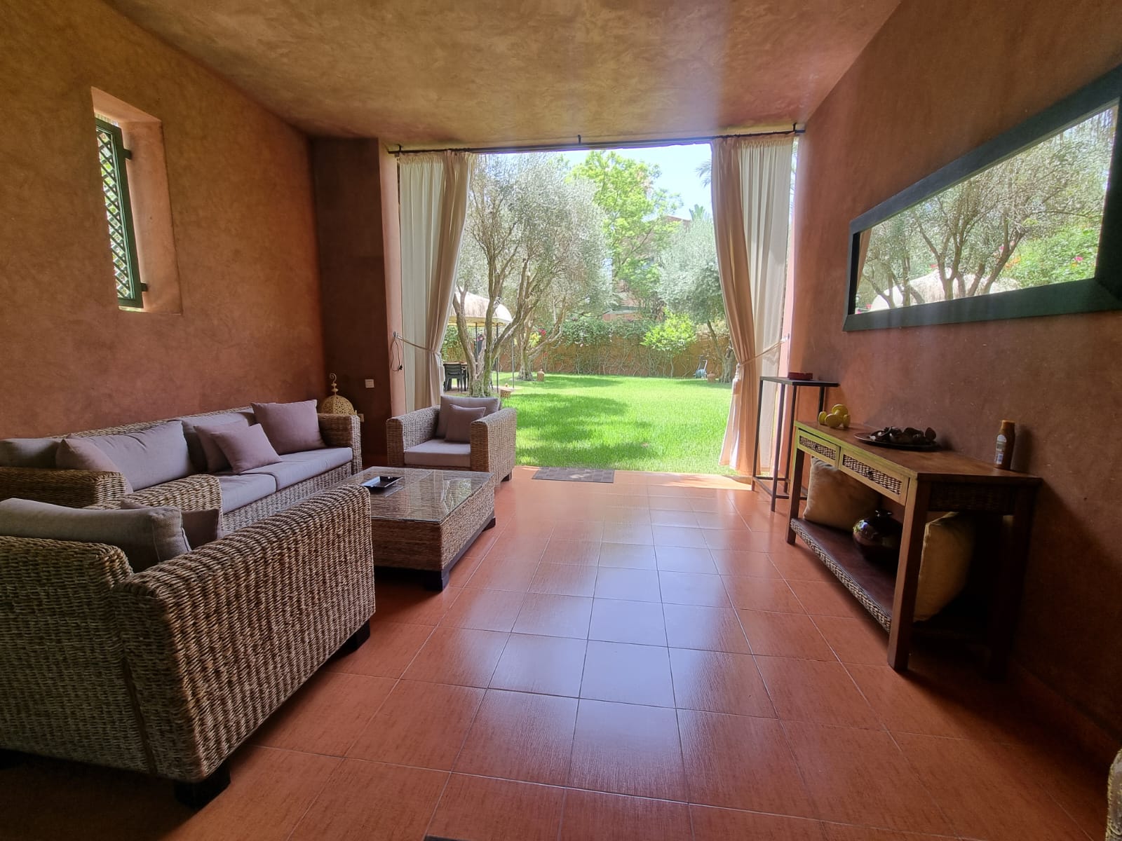 Dans une résidence verdoyante au style marocain raffiné, cet appartement en rez-de-chaussée vous séduira par son atmosphère chaleureuse et ses prestations haut de gamme.