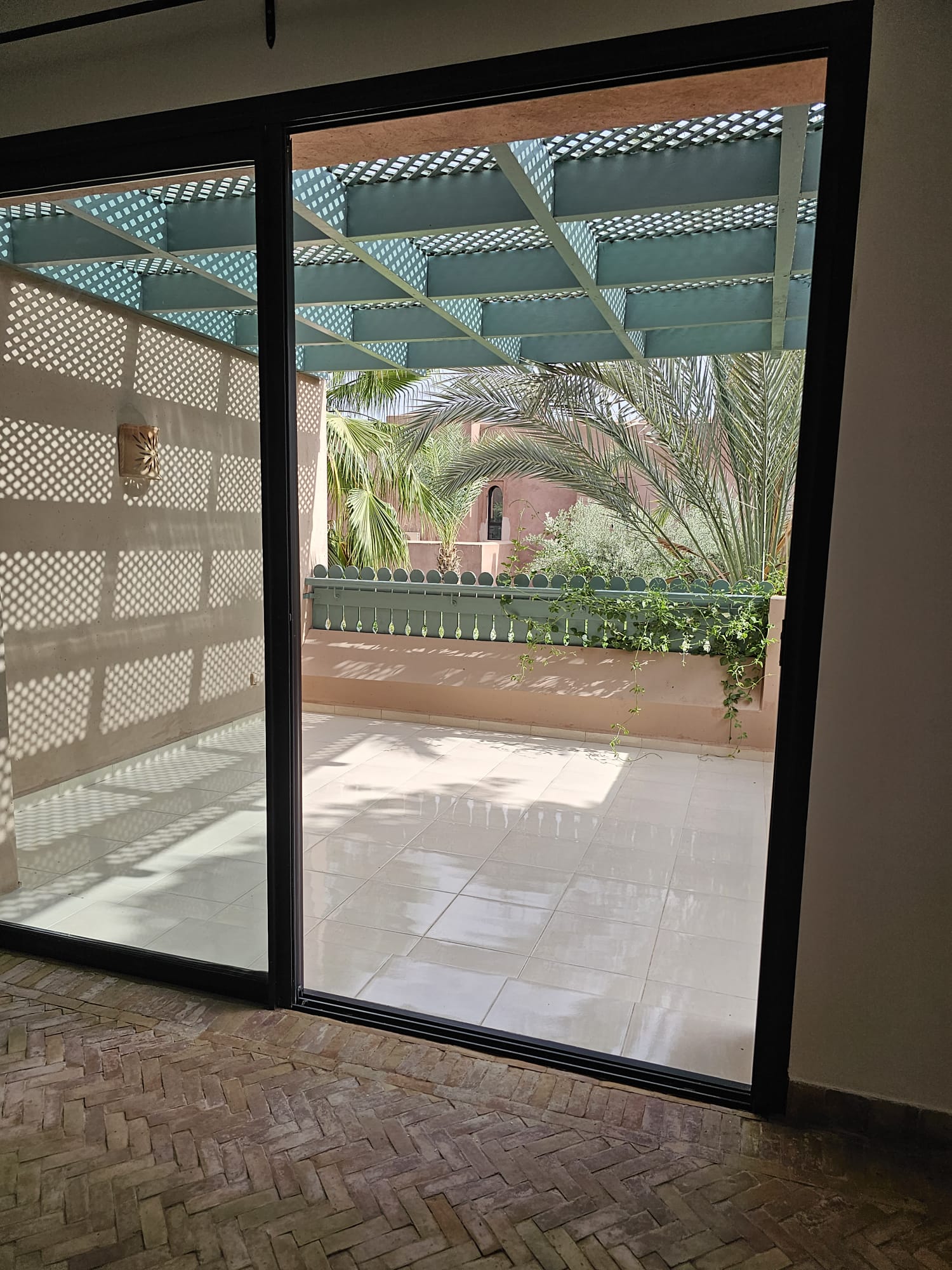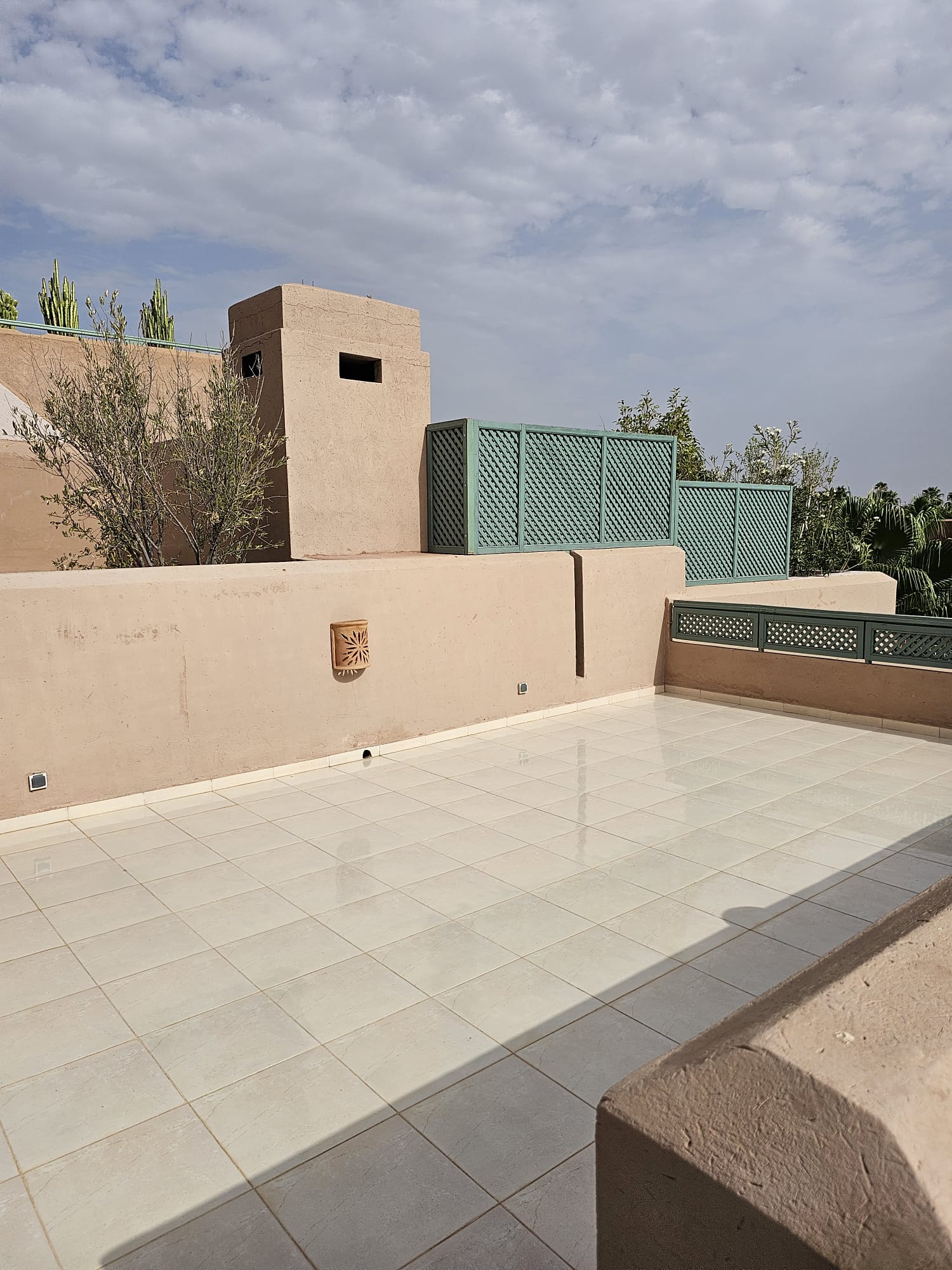 L’appartement de deux chambres et deux salles de bain dispose d’une grande terrasse au niveau du salon mais aussi un rooftop avec vue Atlas privé.