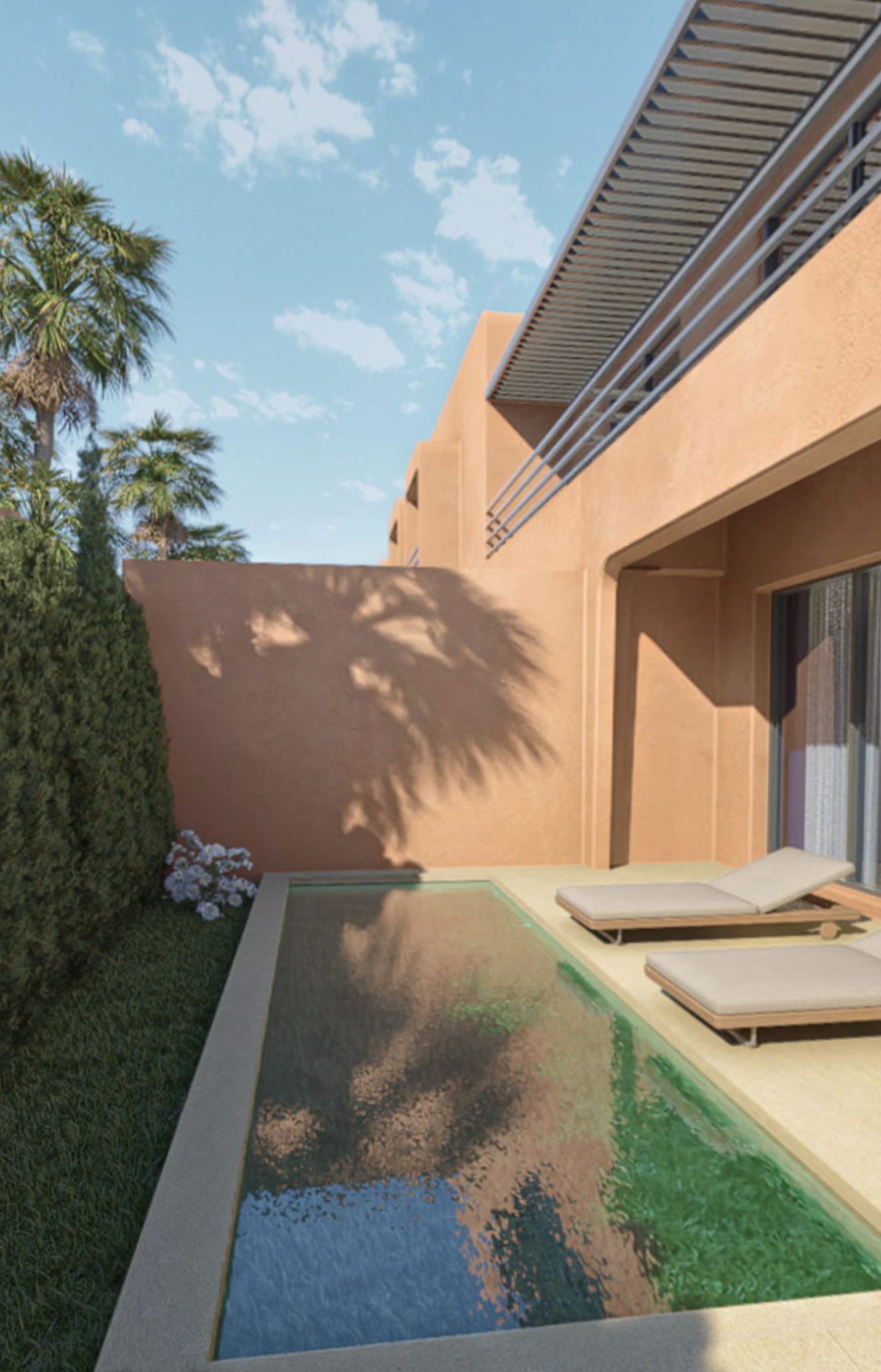 Chaque propriété dispose de sa piscine privée, d’un jardin paysager, et donne accès à un magnifique lagon, ainsi qu’à un espace de jeux dédié aux enfants, idéal pour les familles.